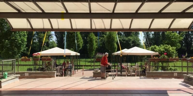 La residenza per anziani è dotata di un parco interno per i momenti di socializzazione all'aria aperta.